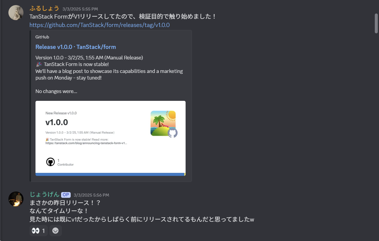 その中で、Tanstack Formのv1リリースの話題ももちろん取り上げられました。
