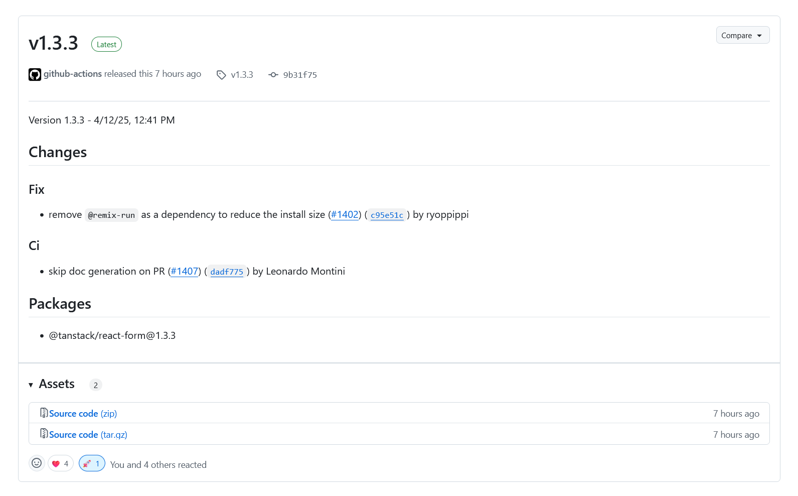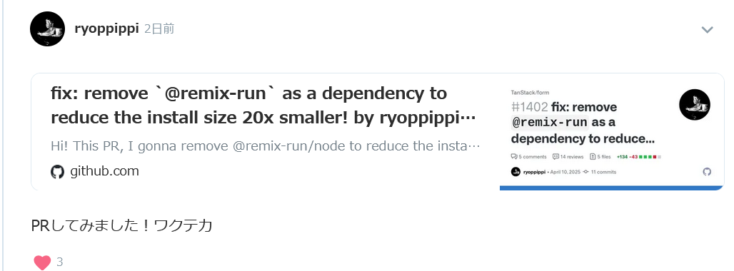 PRのレビューも、マージも、リリースも非常に早く、正直あまり良い印象ではなかったTanstackチームの動きの速さに、これだけで一気にファンになりました。