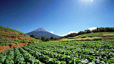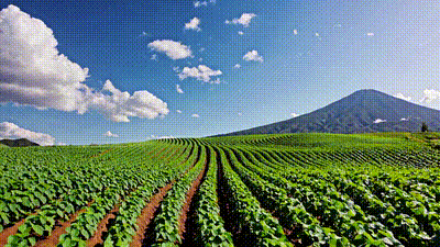 例: "Sweet potatoes growing in the beautiful landscapes of Kagoshima."