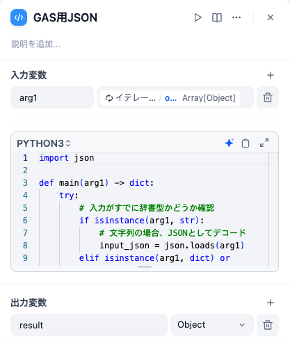 - GAS用のJSONに加工