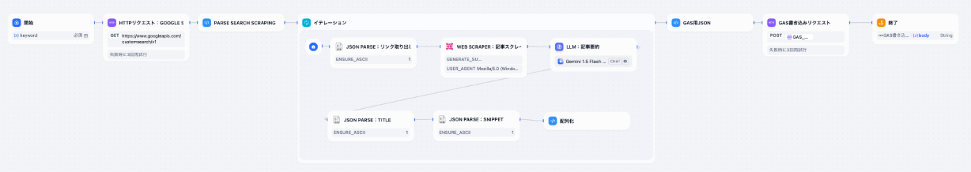 [Dify]Google Search API検索、スクレイピング、記事要約、スプレッドシート格納までのワークフロー作成メモ
