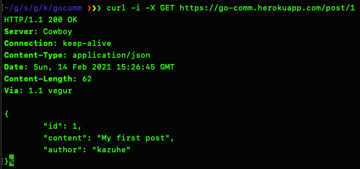 $ curl -i -X GET https://go-comm.herokuapp.com/post/1
