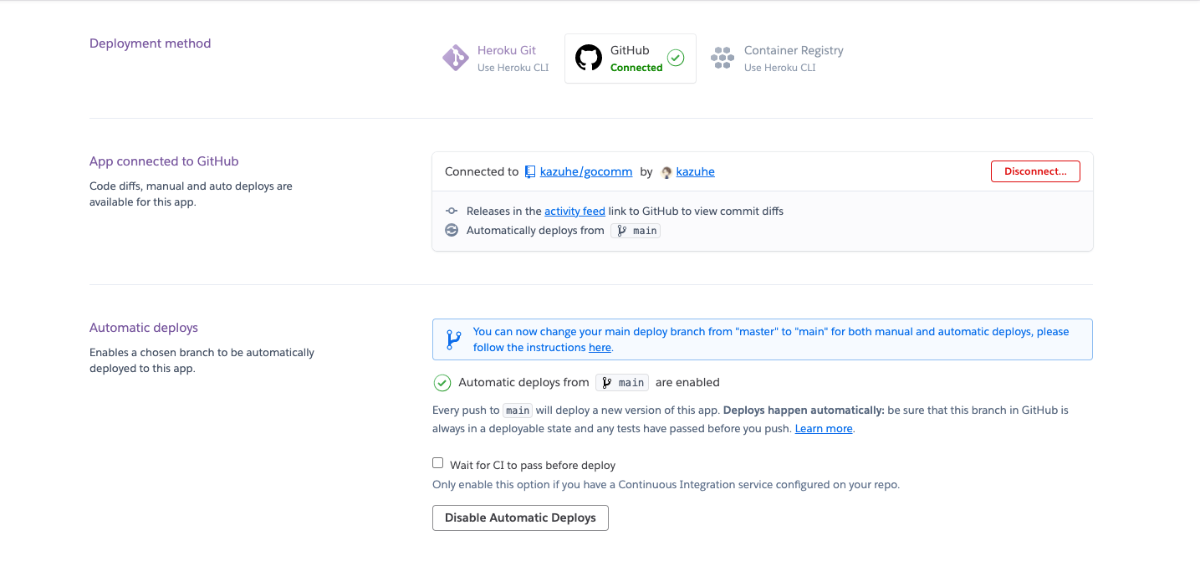 タブから対象のGitHubリポジトリの設定と自動デプロイを有効化するだけで連携は完了です。