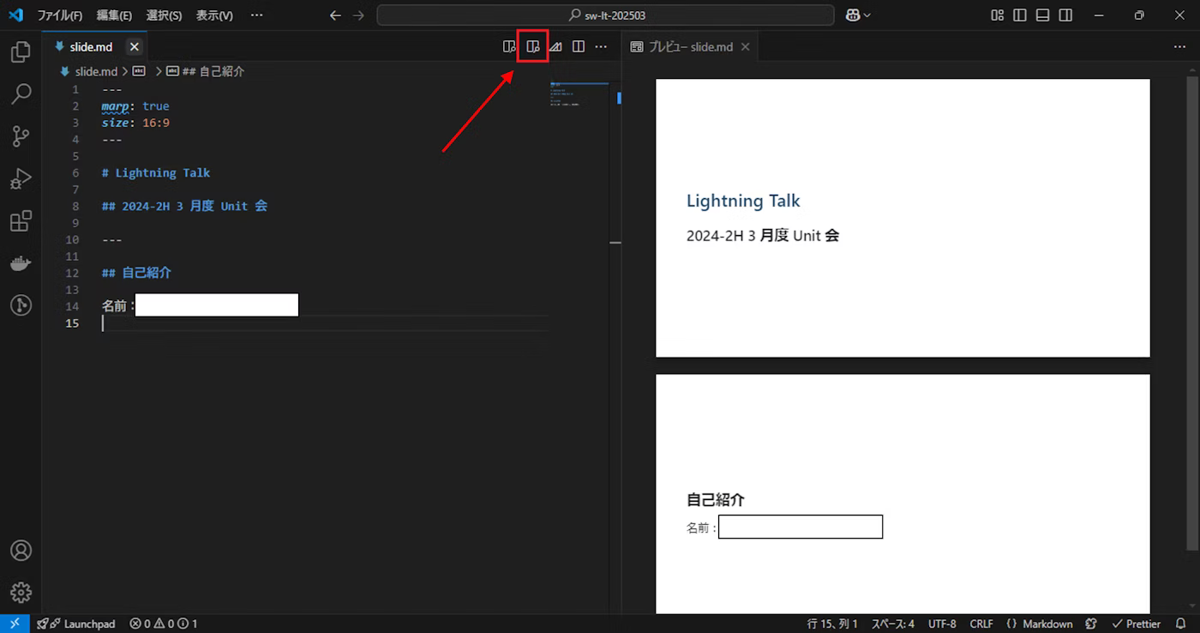 1.2 vscode デフォルトの Markdown プレビューボタンを表示する