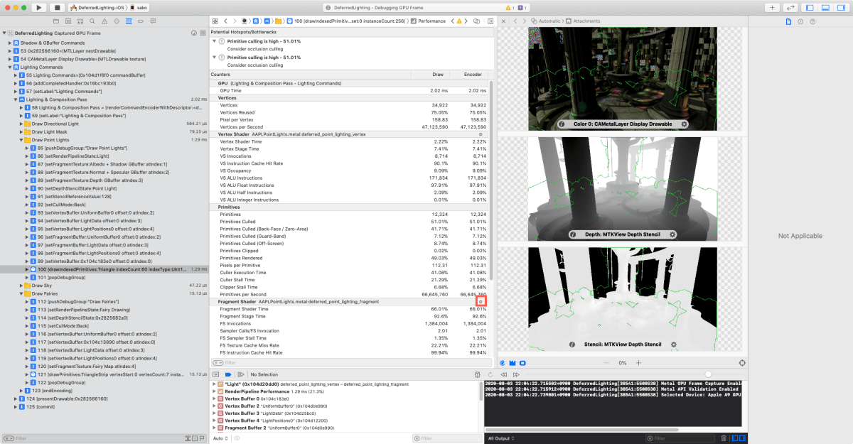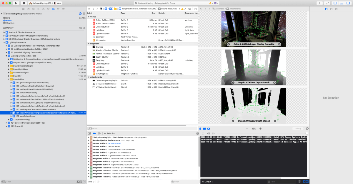 今回はAppleのDeferredLightingのサンプルをキャプチャしてみた。
