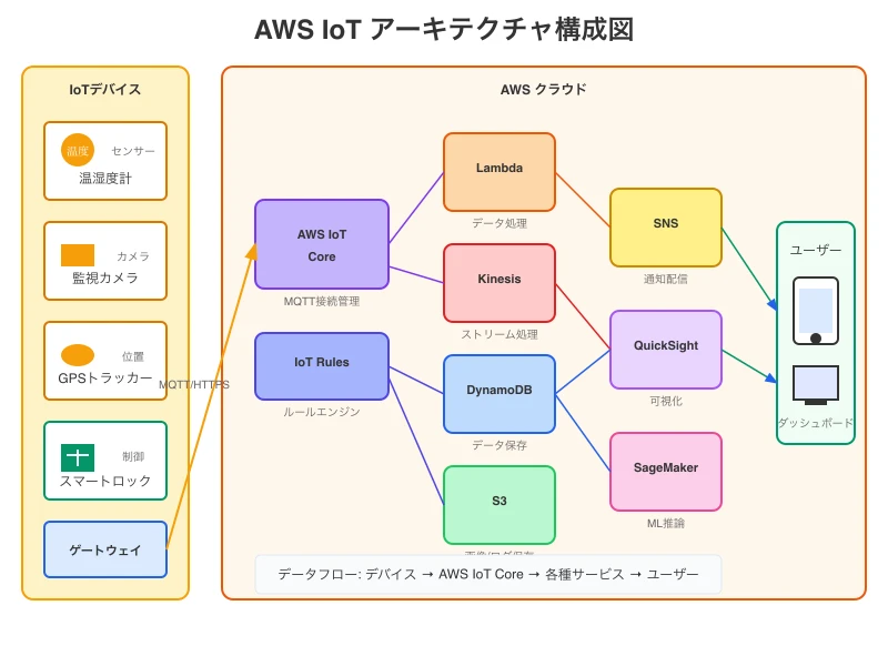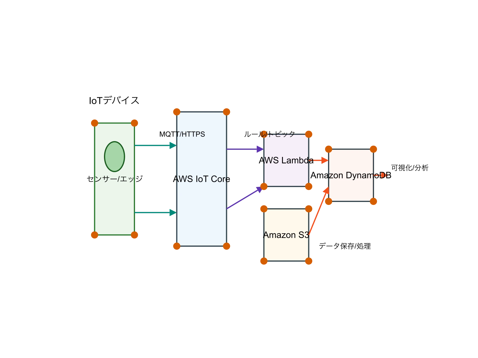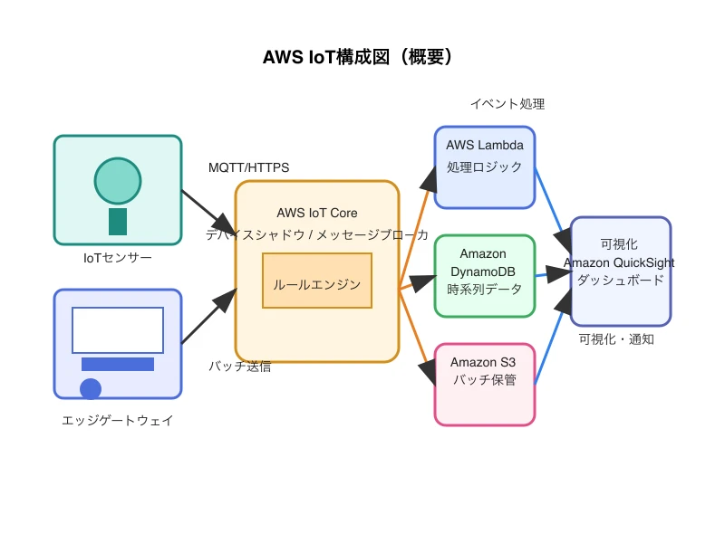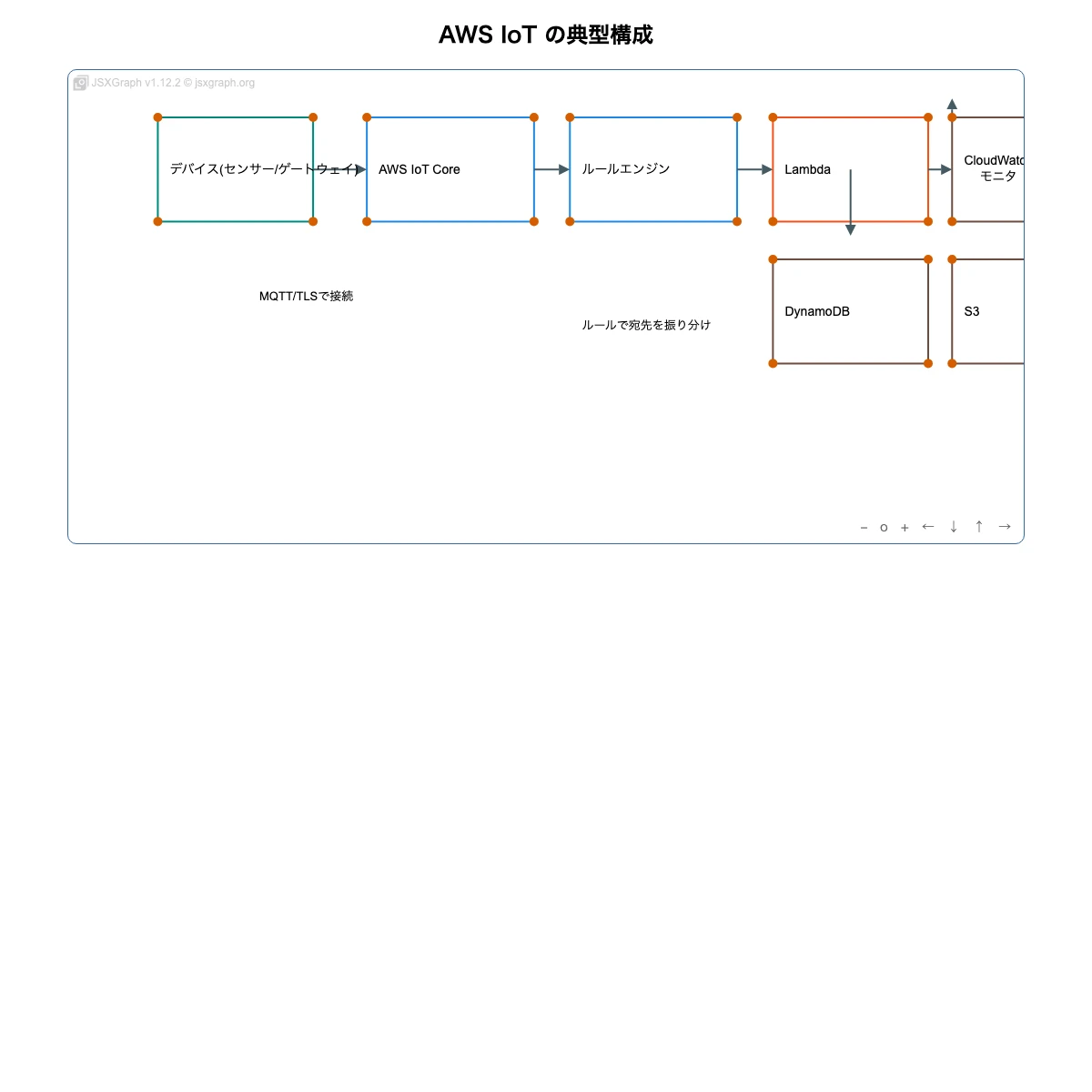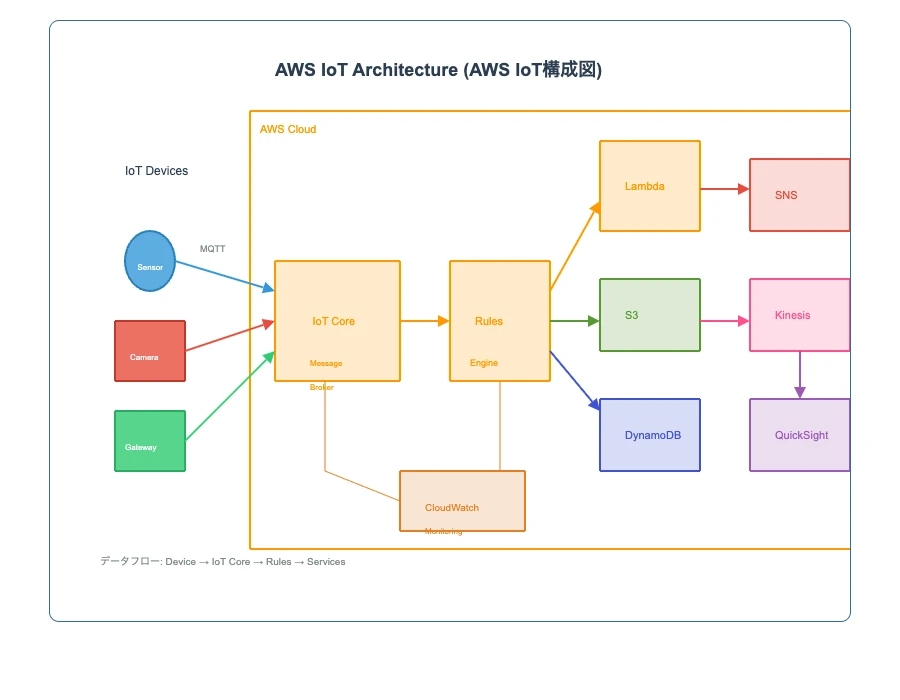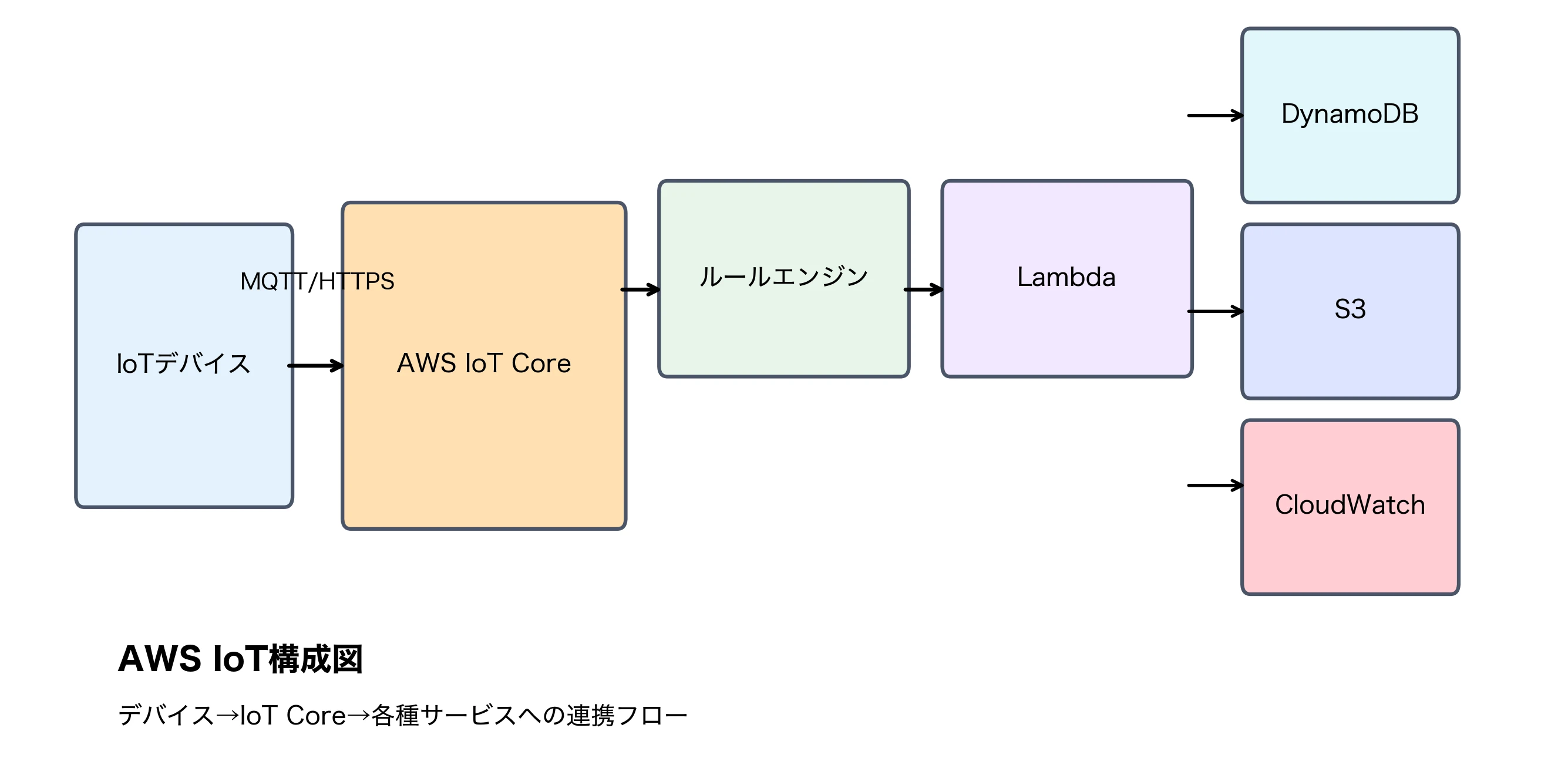 - 各AWSサービスは公式アイコン風のシンプルな図形で表現