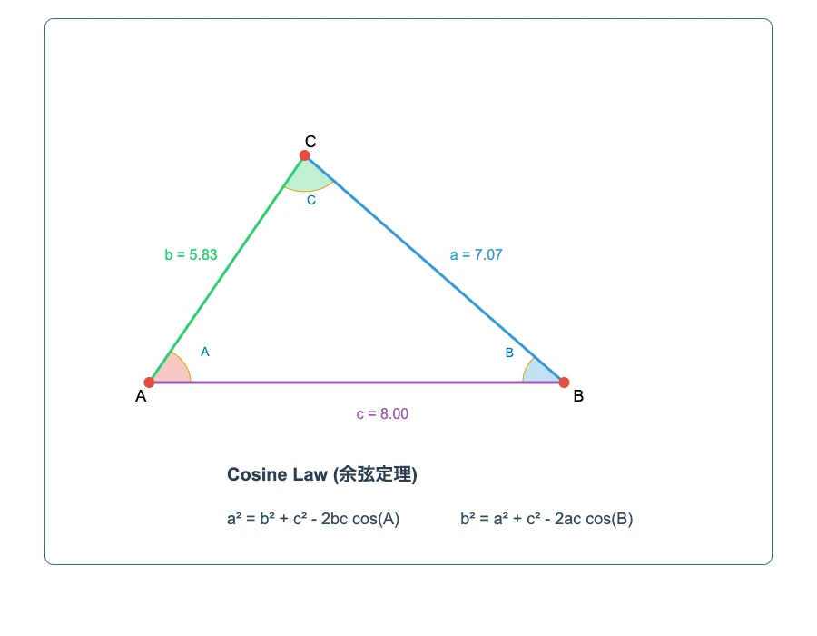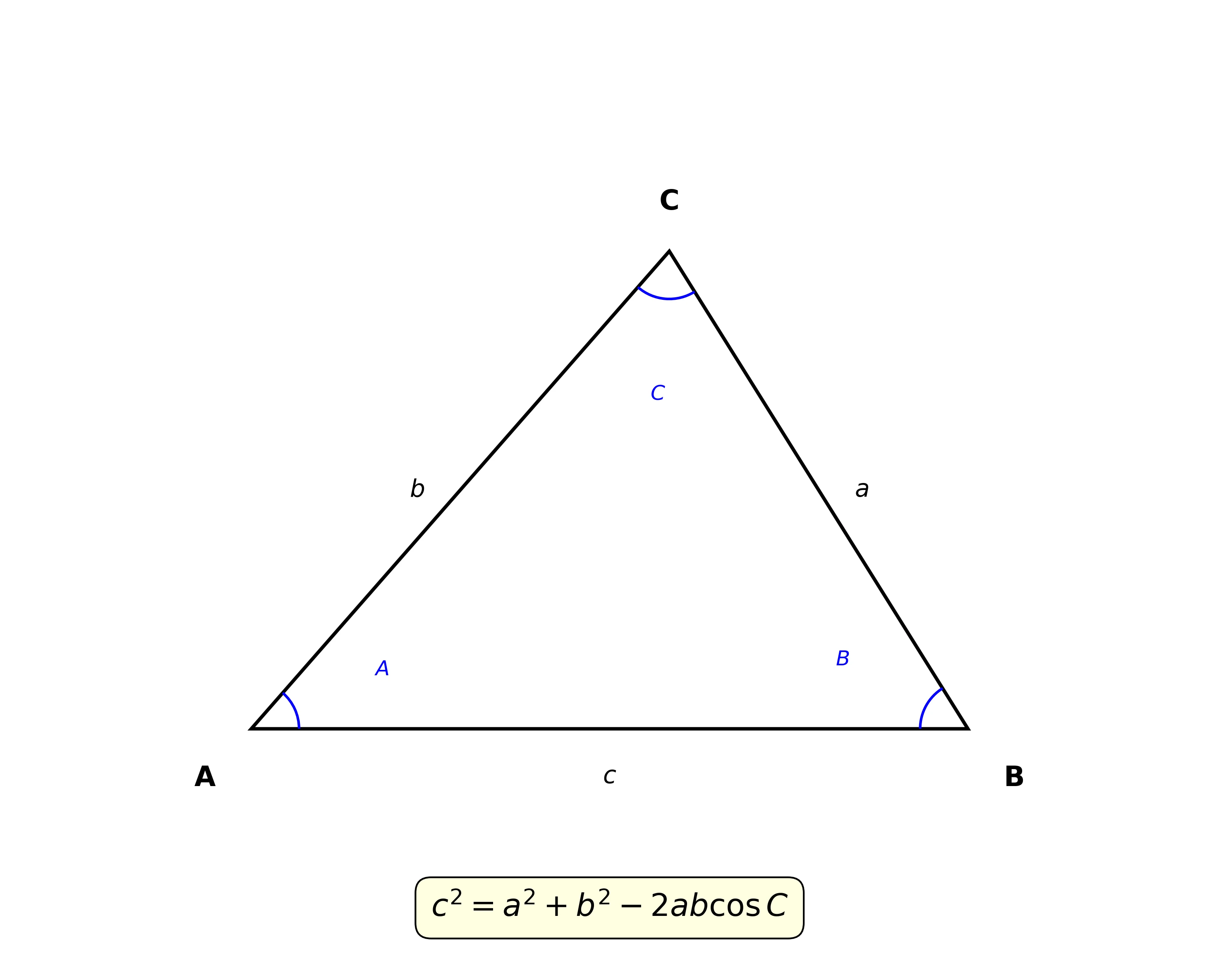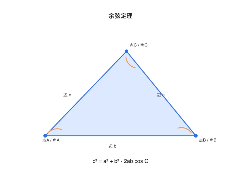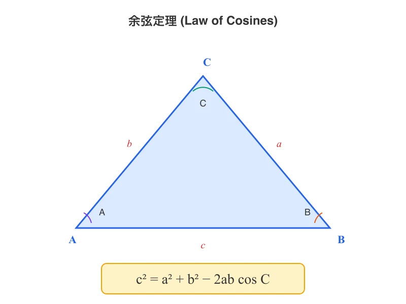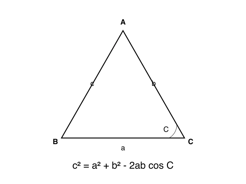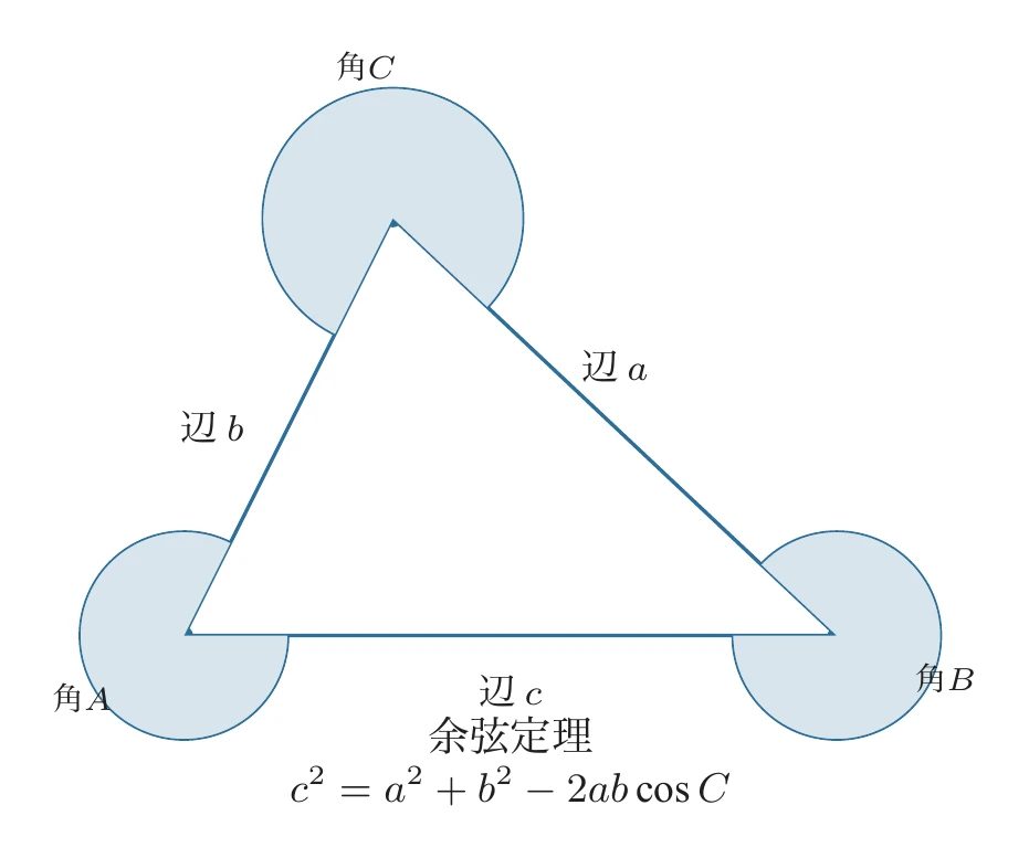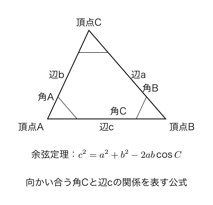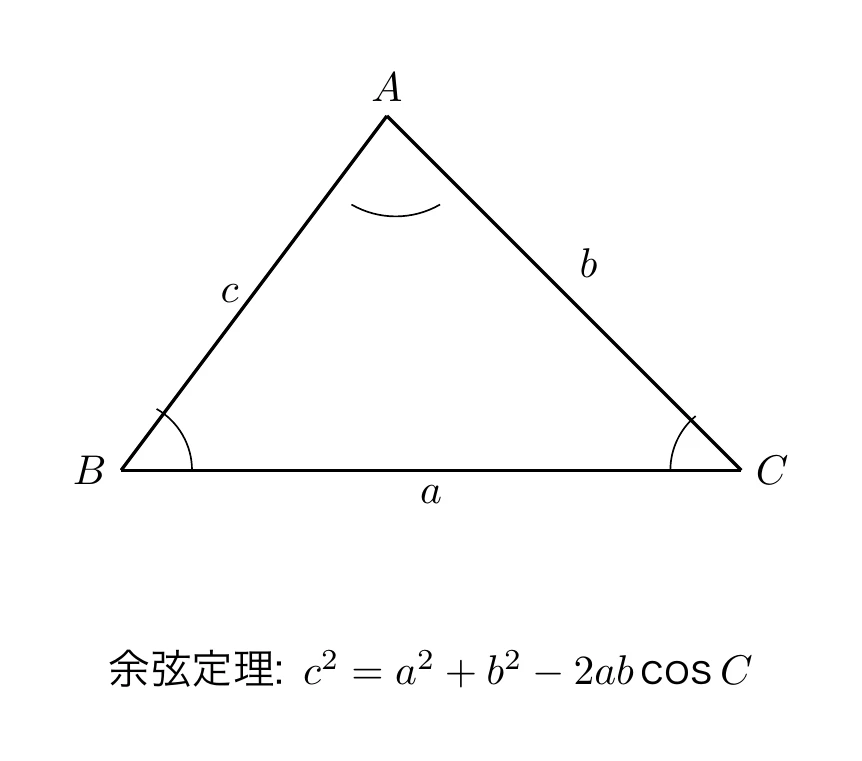 - 公式 c² = a² + b² - 2ab cos C を図の下に表示