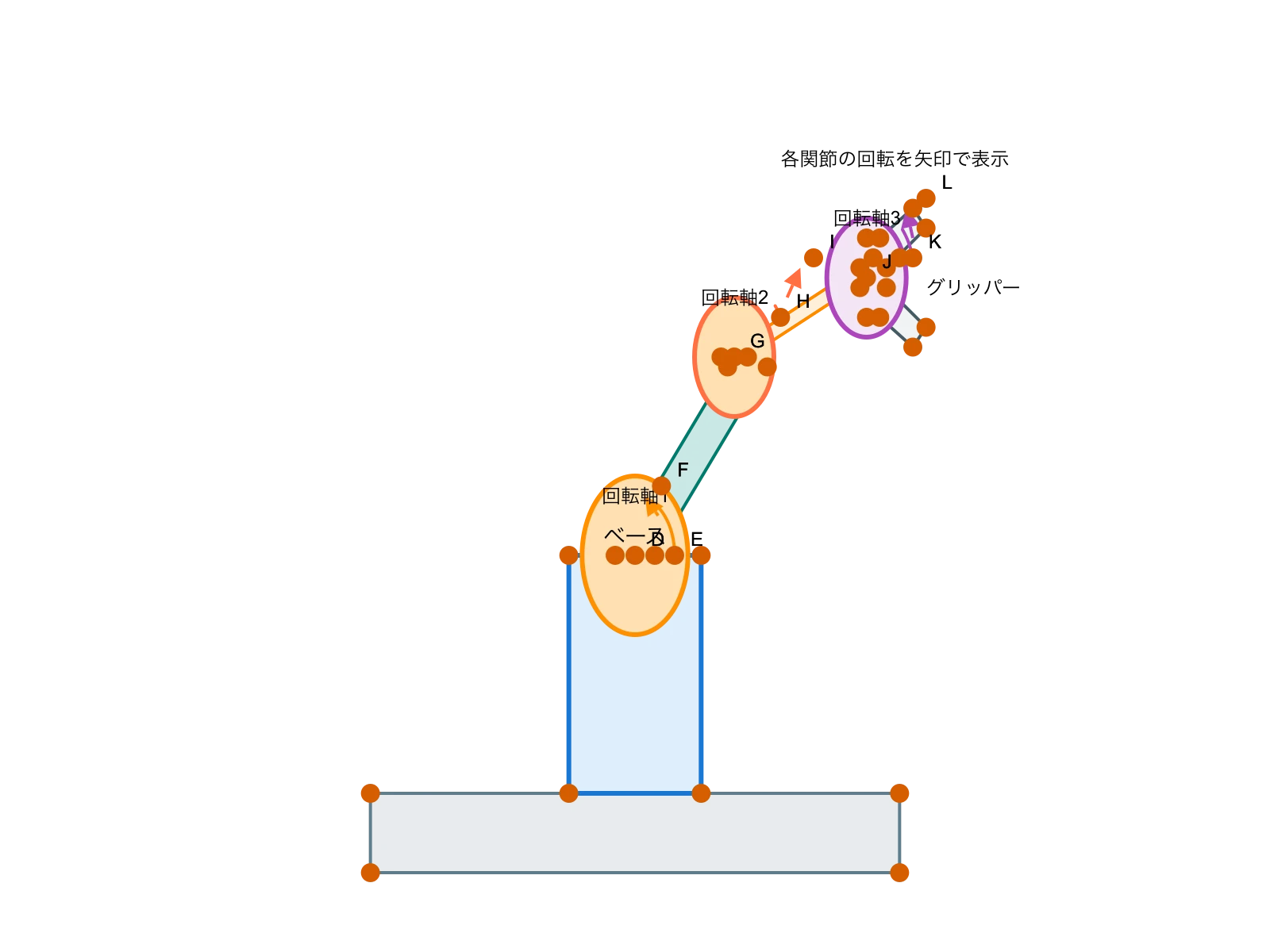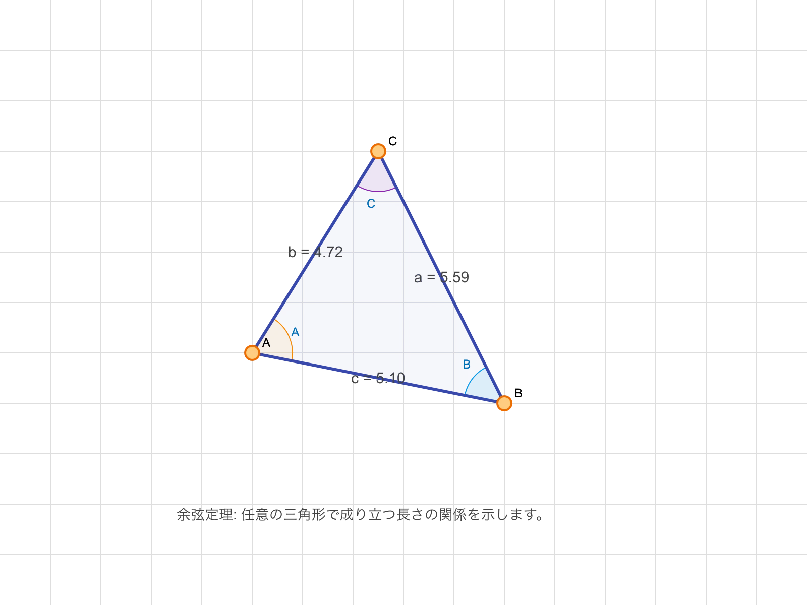 - 三角形ABCを描き、辺a,b,cと角A,B,Cをラベル付け