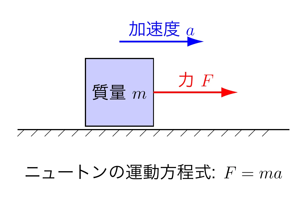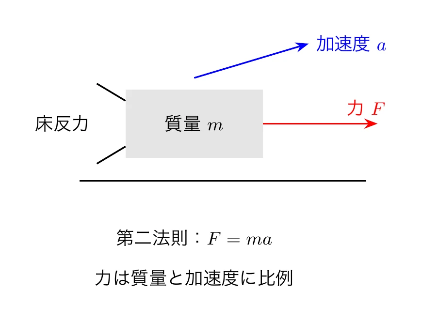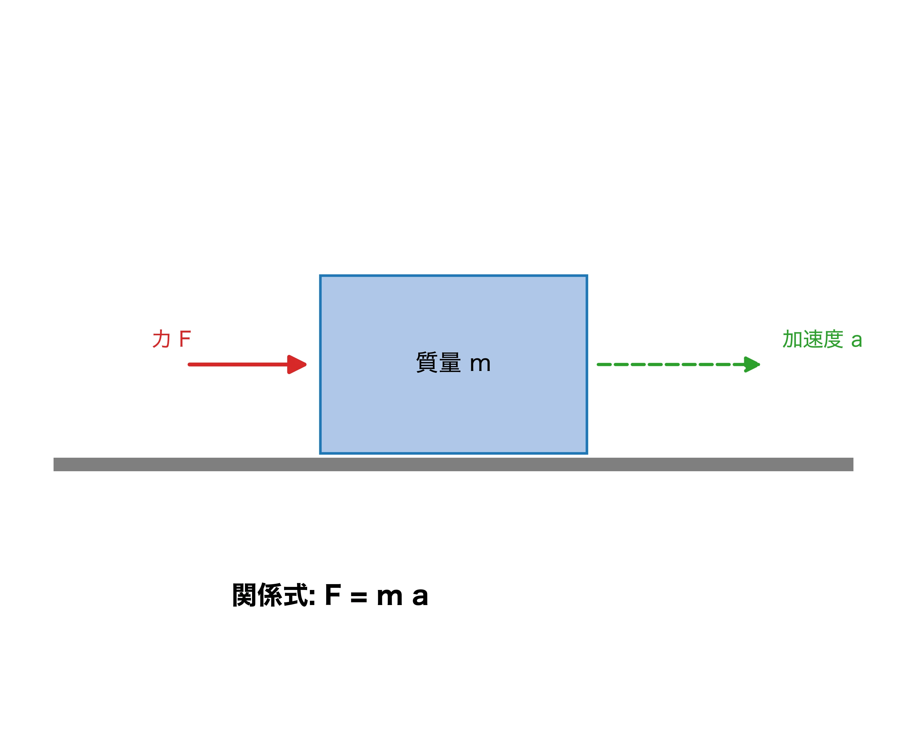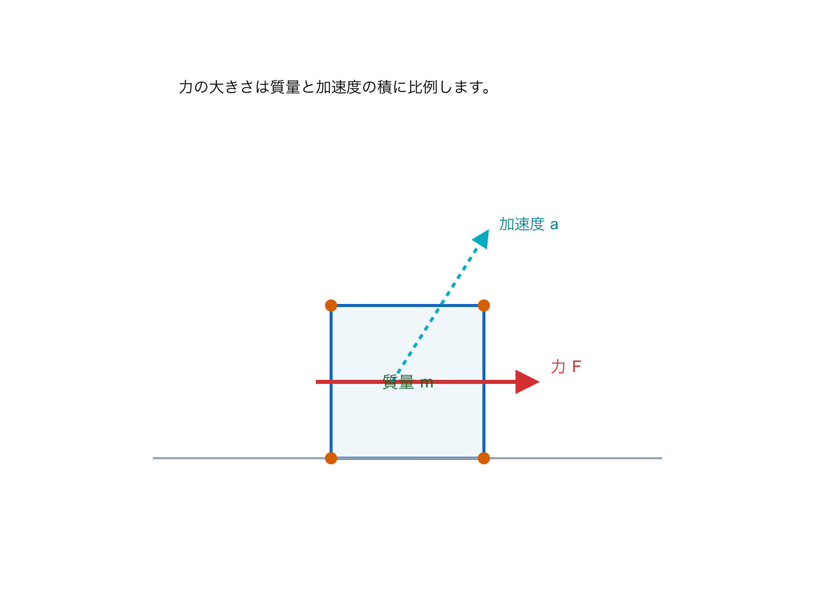 - 物体(箱)に力Fの矢印、加速度aの矢印を描く
