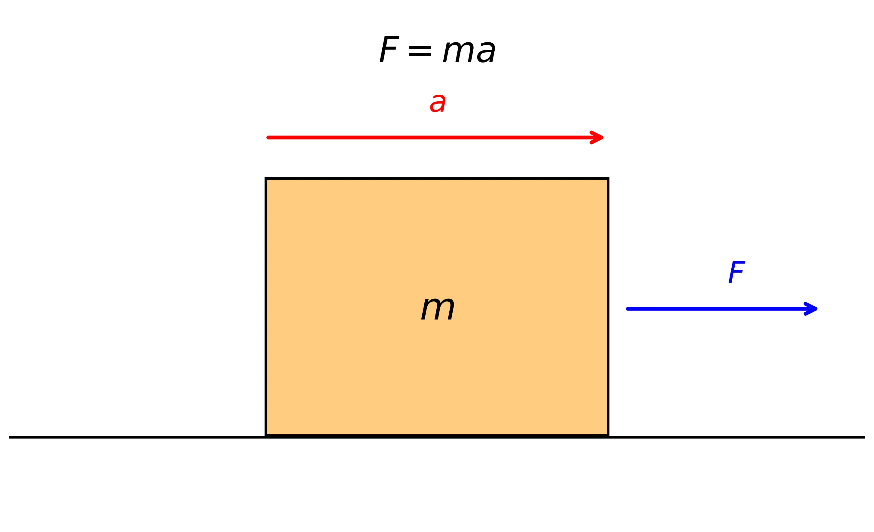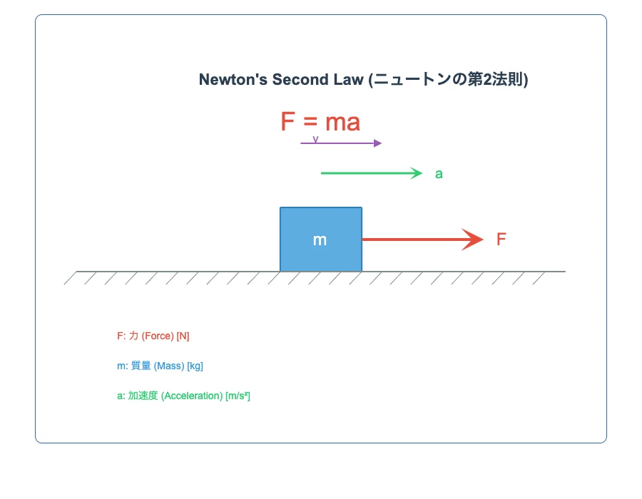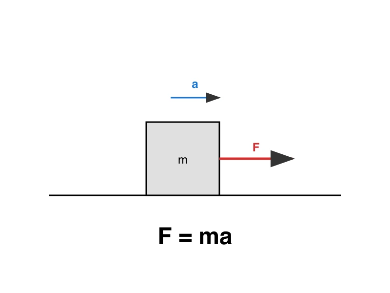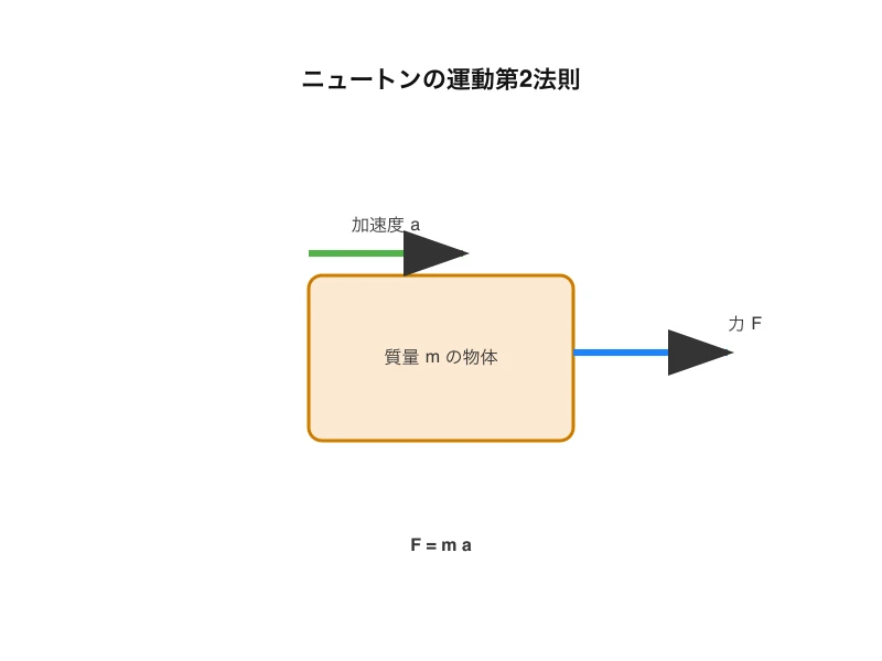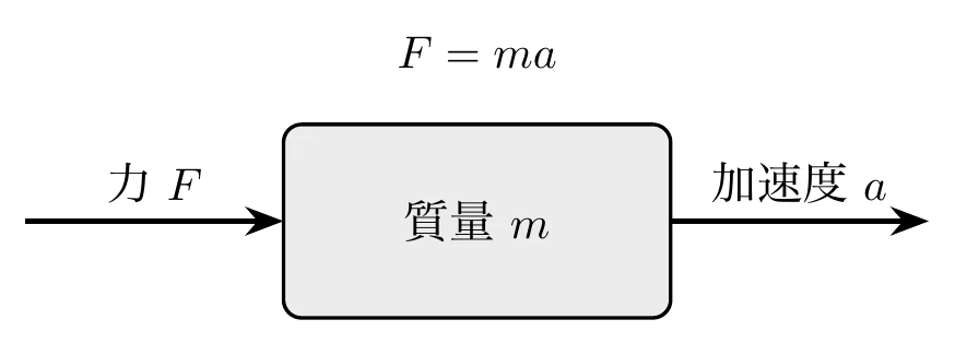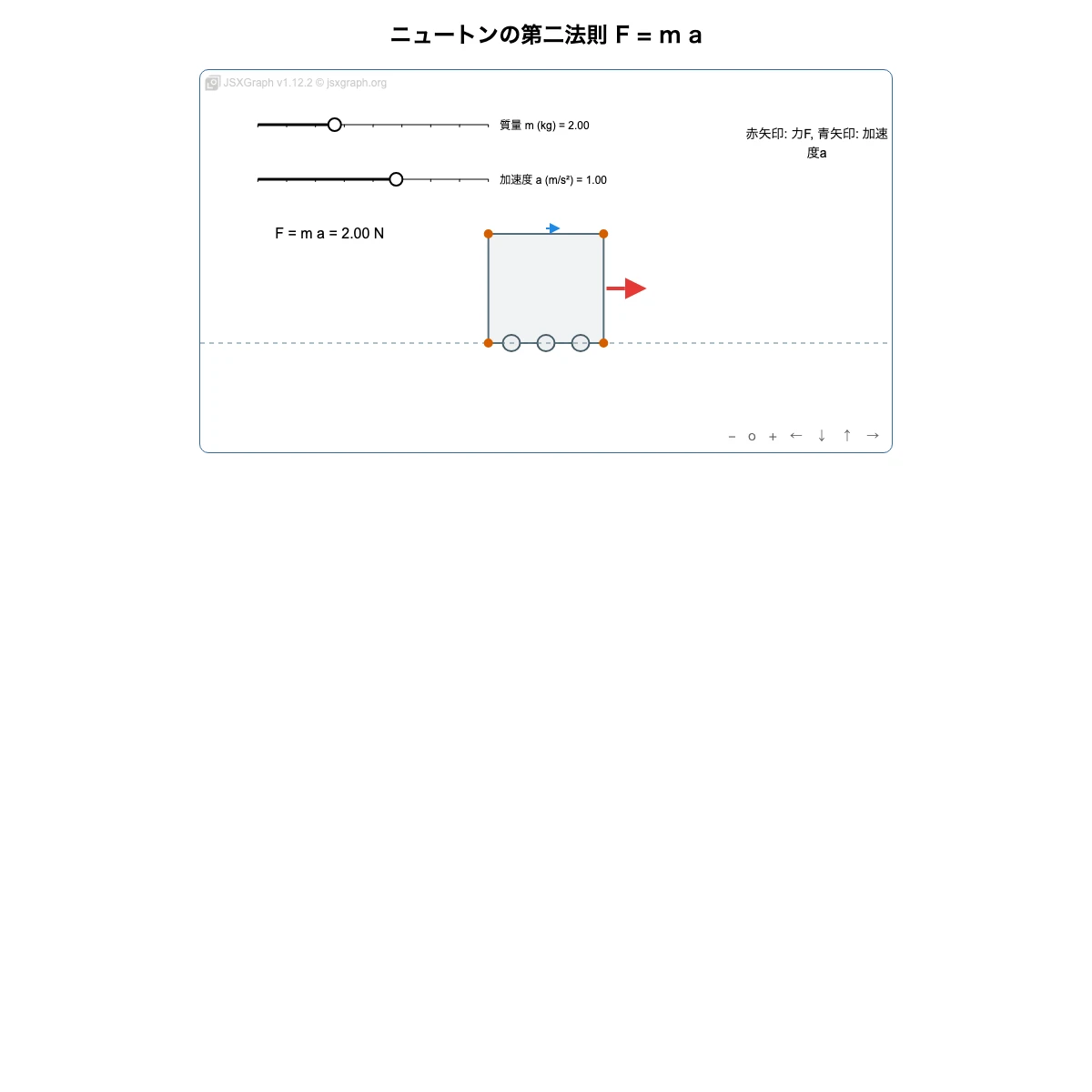 - 物体(箱)に力Fの矢印、加速度aの矢印を描く