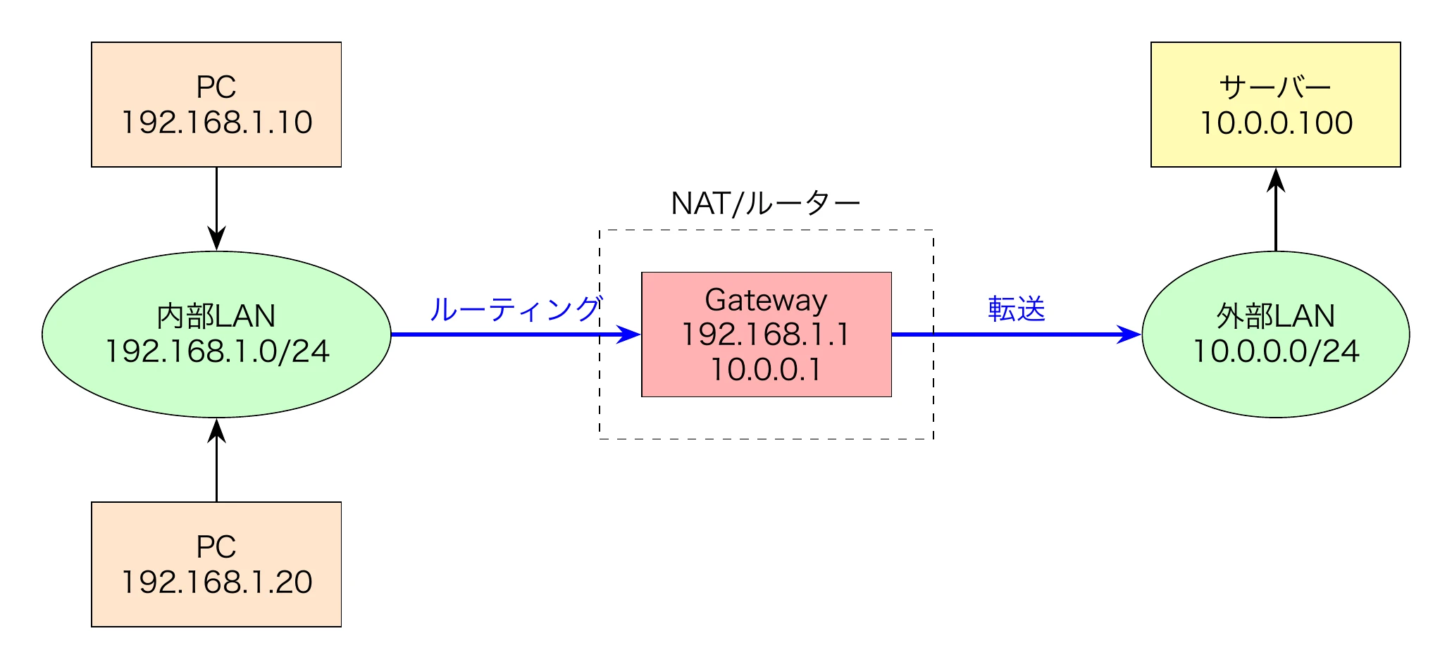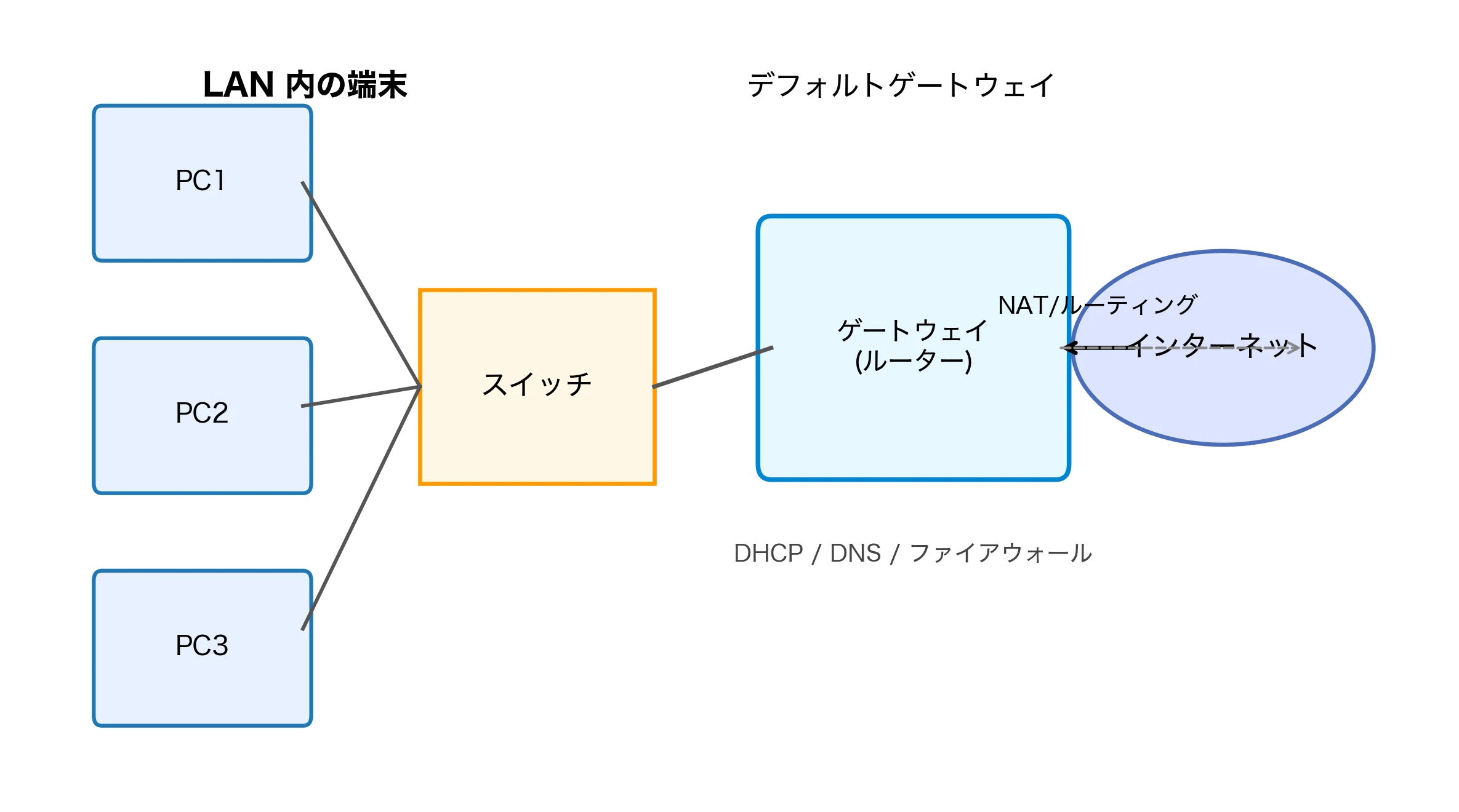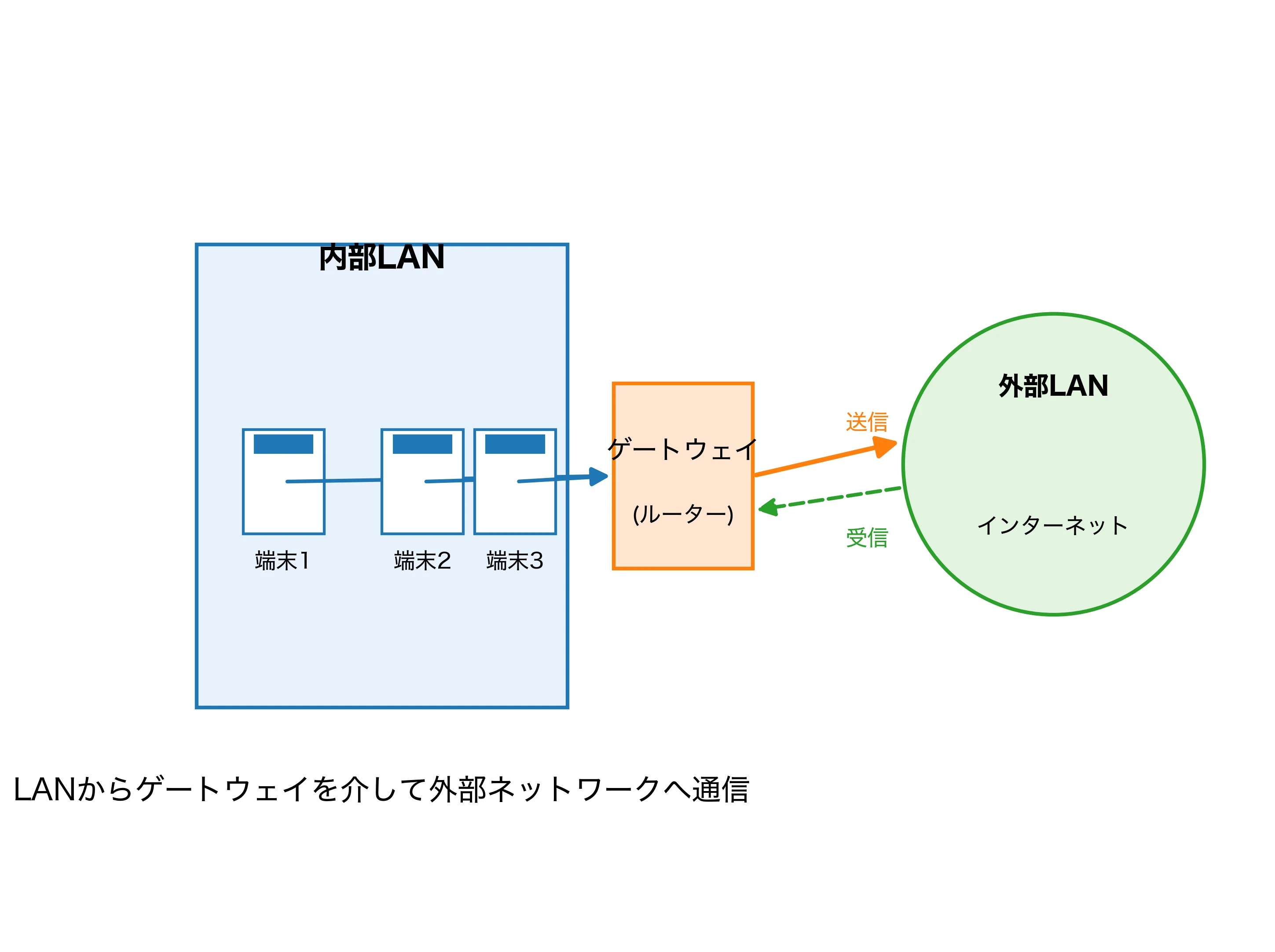 - 右側: 外部LAN/インターネット(クラウドアイコン)