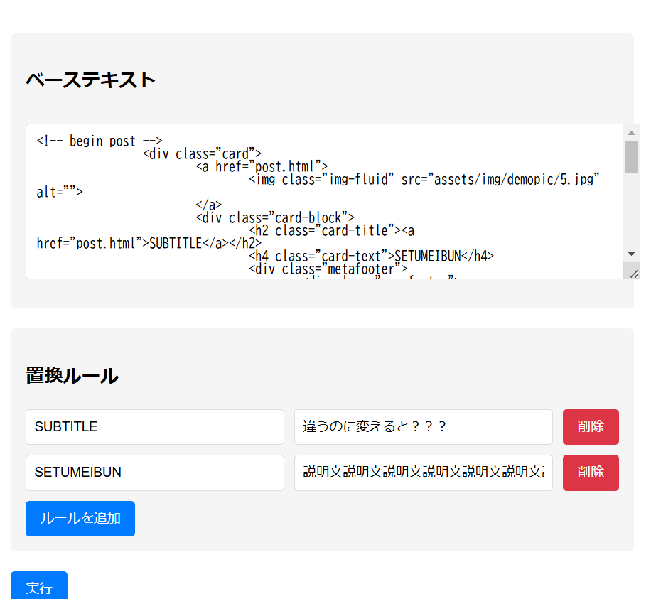 <textarea id="base-input" placeholder="置換対象のベーステキストを入力してください"></textarea>