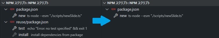 リポジトリに複数のpackage.jsonが存在する場合、VSCodeの「NPMスクリプト」の項目が長くなってしまいます。