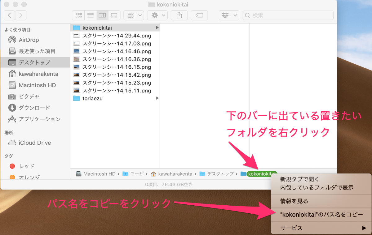 *例えばデスクトップ内に自分の好きなフォルダkokoniokitai