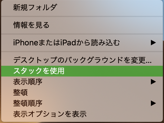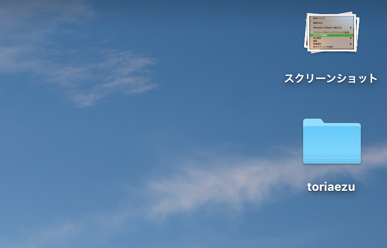 スタックという機能を使って、Desktop上でスクリーンショットファイルを一括にまとめるやり方です。