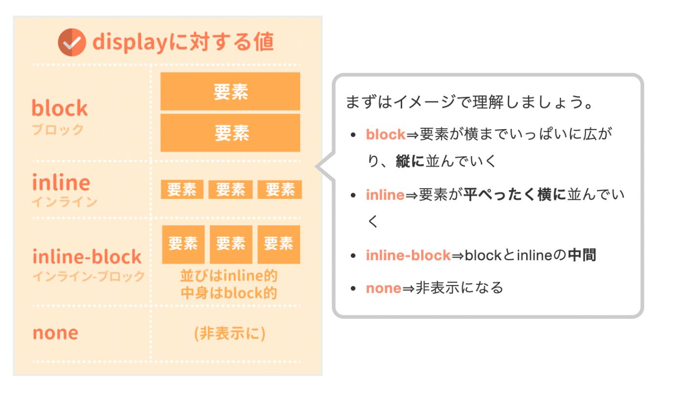 displayに対する値として、まず次の4つを覚えましょう。