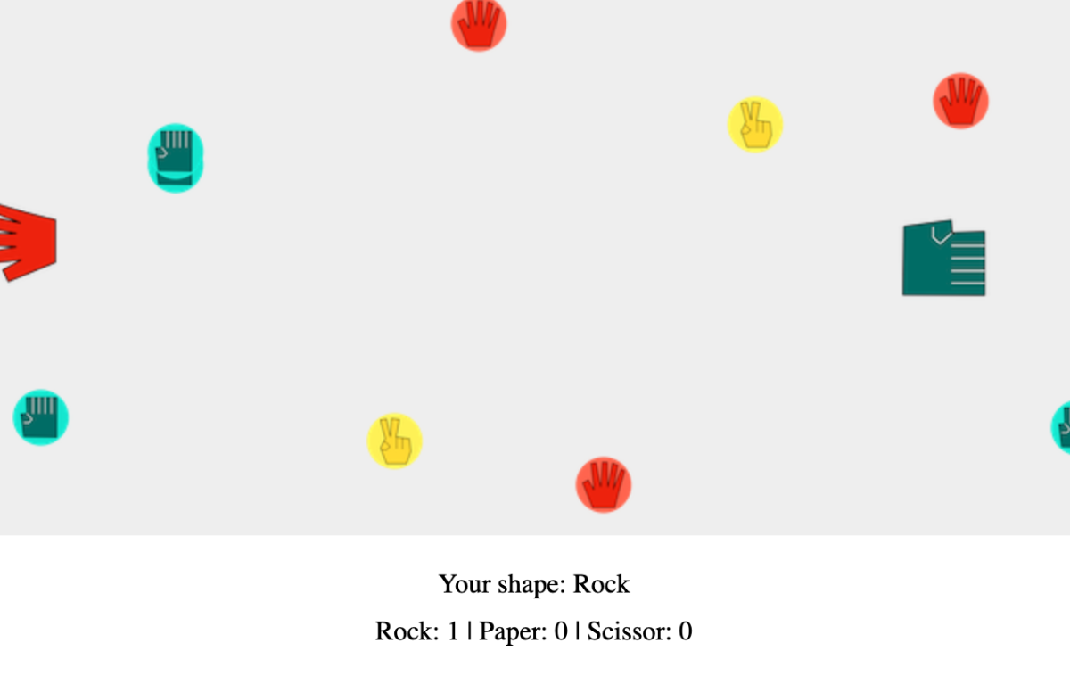 2D空間動き回りながら、プレイヤー同士がバトルロイヤル形式でじゃんけんをするゲームをつくりました。こちらから試しに遊べます。