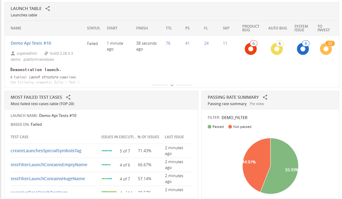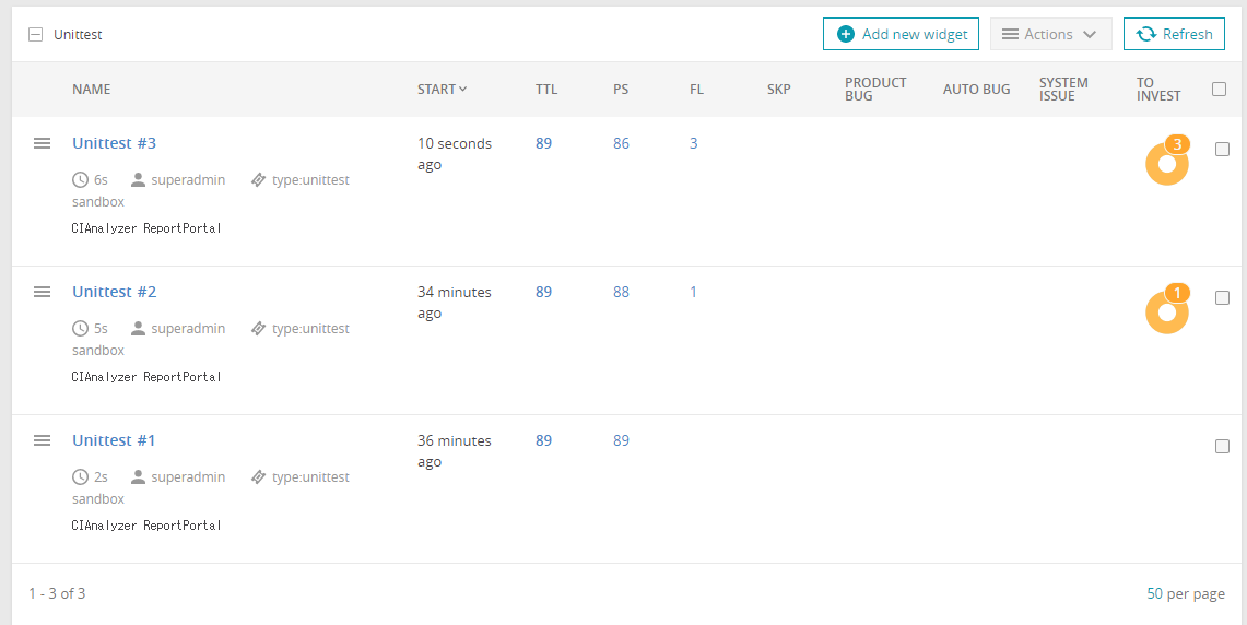 テストを実行するたびにReportPortalに情報が送られ、同じlaunch名の場合は実行するたびに#1, #2などが増えていくようです。