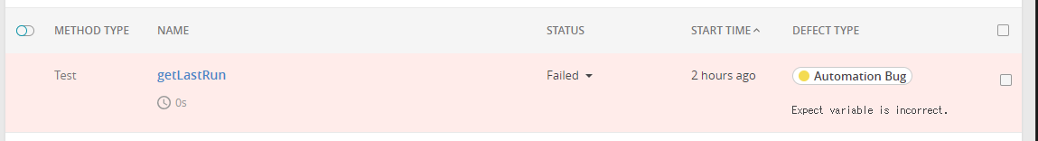 再びテストを実行すると、同じテストケースでDEFECT TYPEとコメントが自動的に入力されていました。最初に実験したときの「Expect variable is incorrect.」とコメントが異なるのでしっかりと別物として区別されているみたいですね。