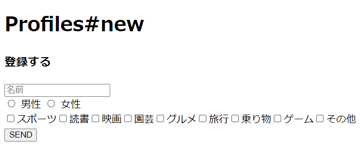 collection_check_boxesの1つめのパラメーターを:hobby_idsとしました。これはProfileを保存する際に、中間テーブルのhobby_idにも情報を保存するためです。