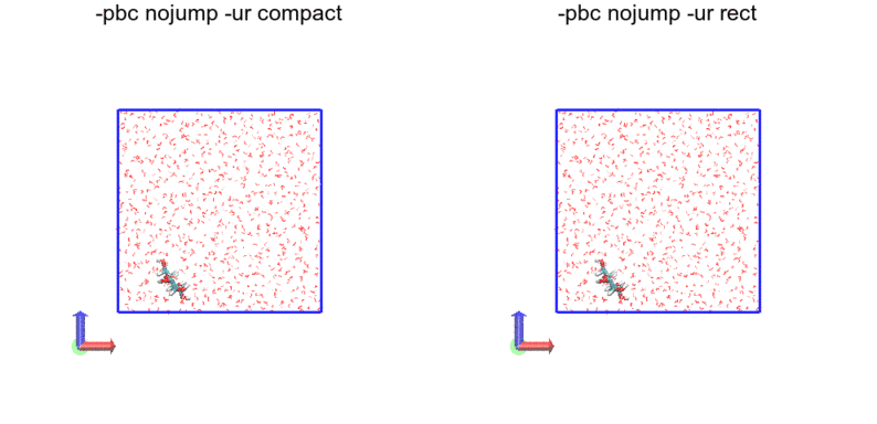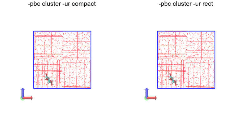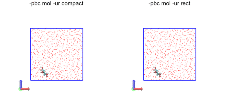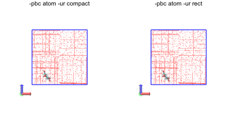 .mdpで与えるオプションとして、pbc, periodic_moleculesのオプションがありますが、これらは計算時の設定なので、今回対象とする視覚化や解析時の話とはあまり関係がなさそうです。