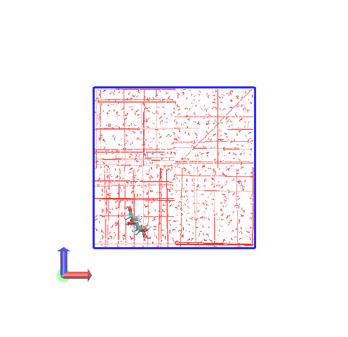 今度は原子単位です。つまり、全原子が箱の中に納まるようにしているだけです。したがって途切れもジャンプもあります。