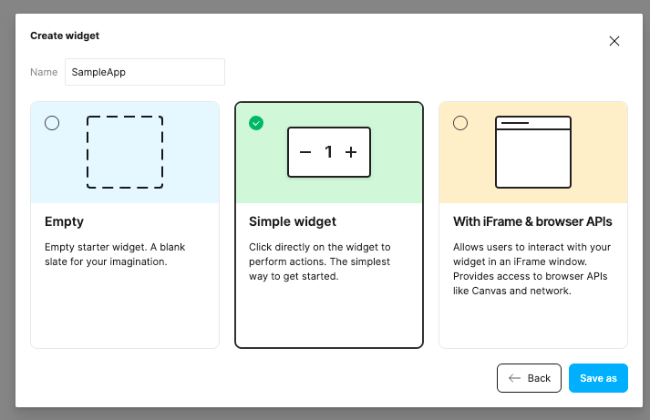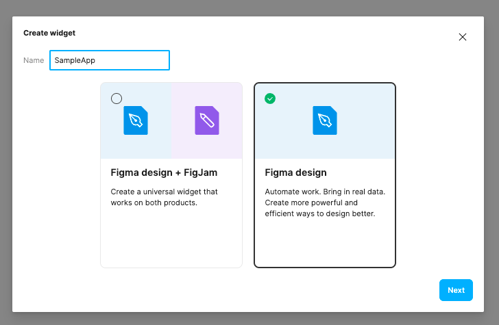 FigmaのデスクトップアプリのメニューのNew Widgetから作成を始める。