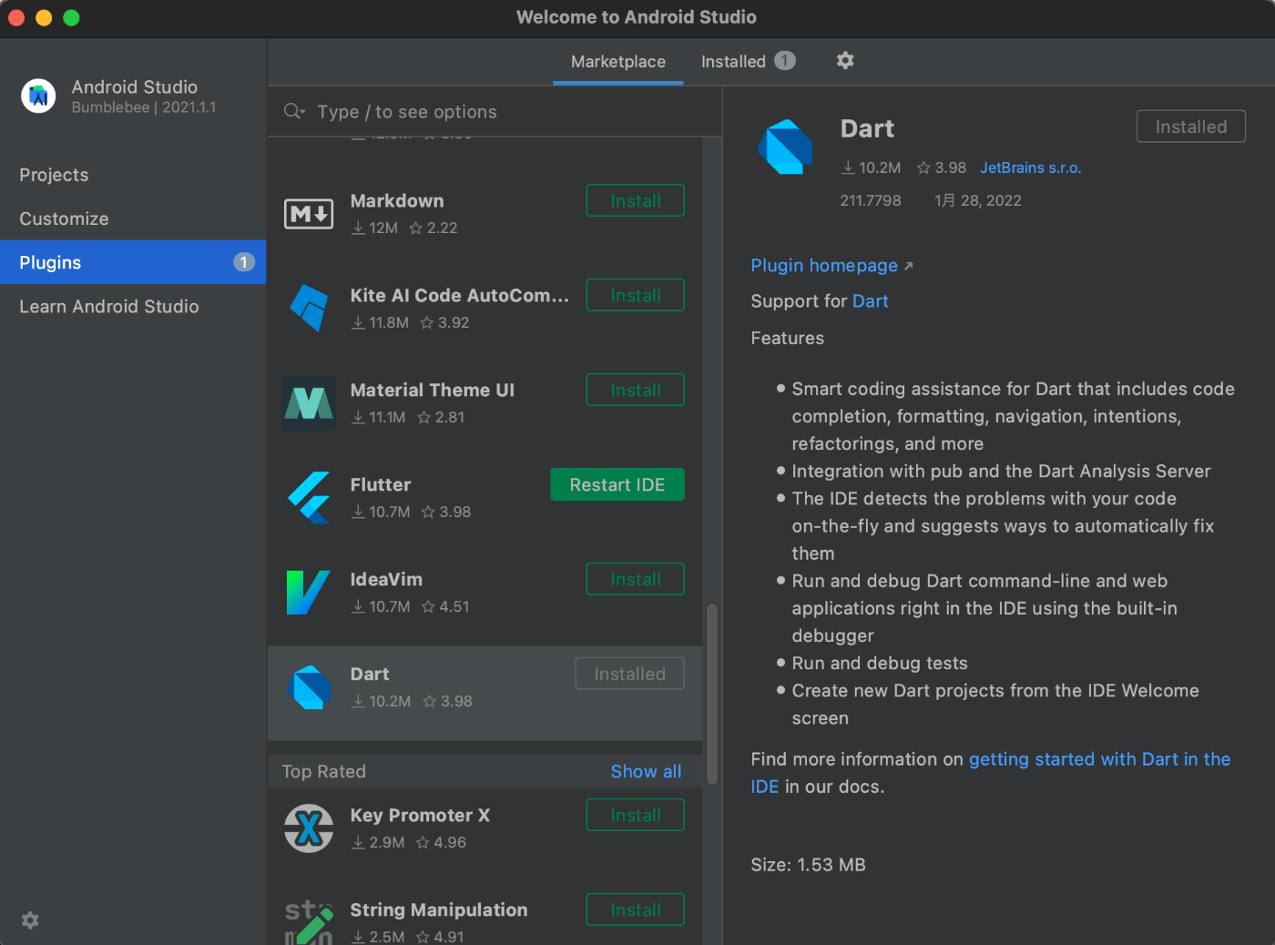 Android Studio の再起動を促されたので再起動 -