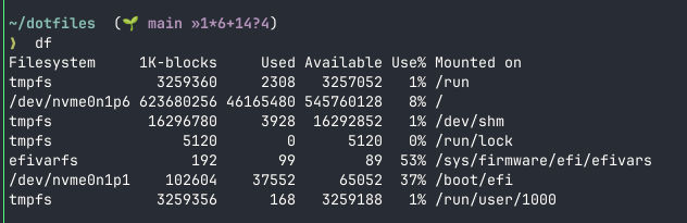 単純にdyskと打ったときの表示はこのようになります。dfコマンドの表示と比べて圧倒的に見やすいので気に入っています。