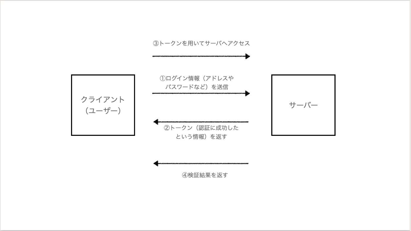 - ログインに成功すると、サーバーはトークン(認証に成功したという情報)を生成し、ユーザーに返します。