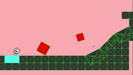 とてもシンプル。実装したコライダーも四角と丸のみ。(カプセルコライダーは組み合わせれば出来そう?)坂道など斜めの当たり判定は、当たったかのチェック自体は簡単だったが(説明してくれているサイトが沢山あったため)、そこからの押し出し処理が個人的に大変だった。