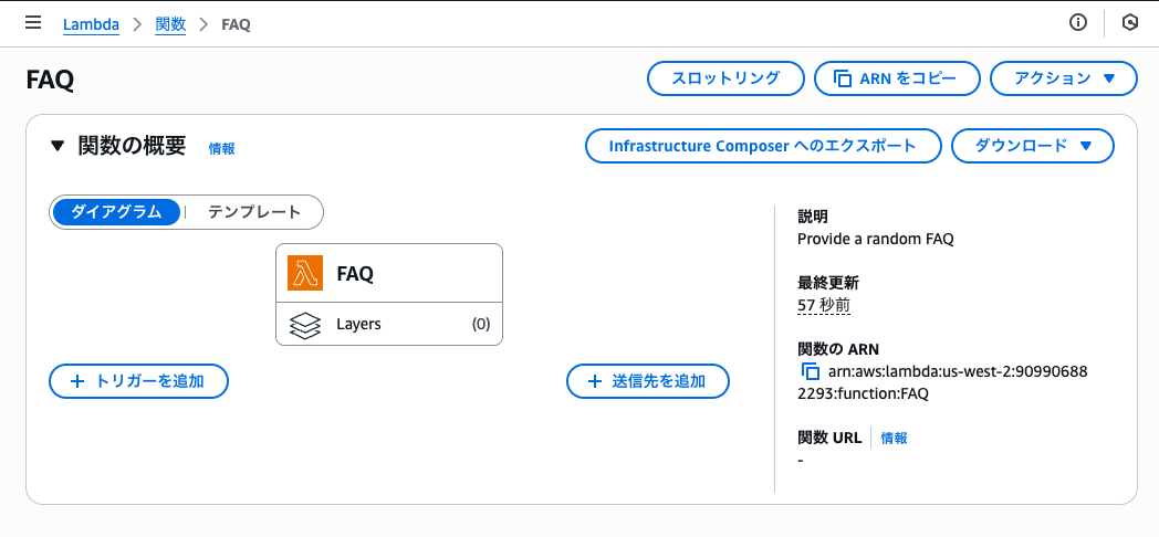 API Gateway と Lambda を使って、ランダムな質問と回答を返す FAQ API を作成します。
