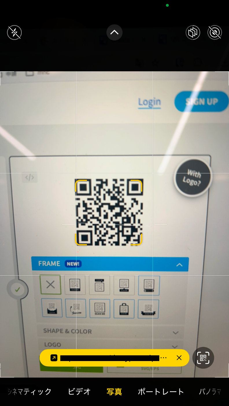 生成したQRコードをネイティブカメラで読み込みます。