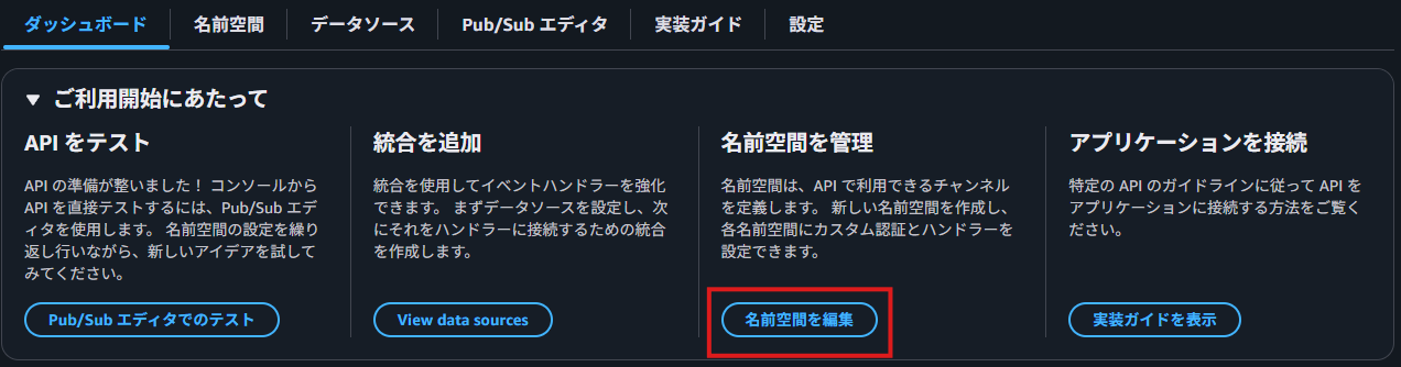 再びAPIのダッシュボードに戻り、 名前空間を編集 をクリックします。