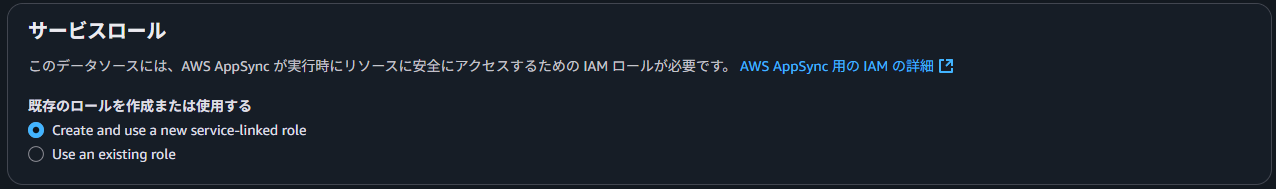 最後にサービスロールの設定があります。ここは、 Create and use a new service-linked role が選択されていることを確認し、下の 作成 ボタンをクリックします。