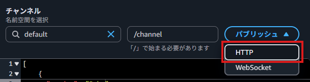 パブリッシュのプルダウンから HTTP を選択するとHTTPリクエストでメッセージが送信されます。