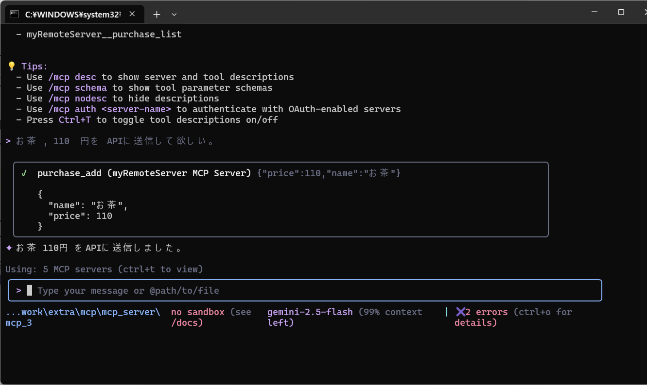 remote MCP Server 作成 , JSON-RPC 2.0 GEMINI CLI