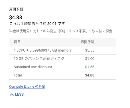 月額予測を確認しながら、問題なければ、インスタンスを作成ください。