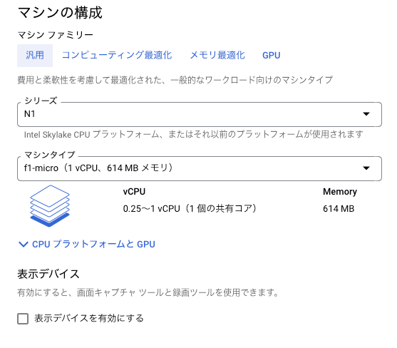 - マシンタイプ : 一番安く済むように選びましたが、用途に合わせてスペックは選択ください