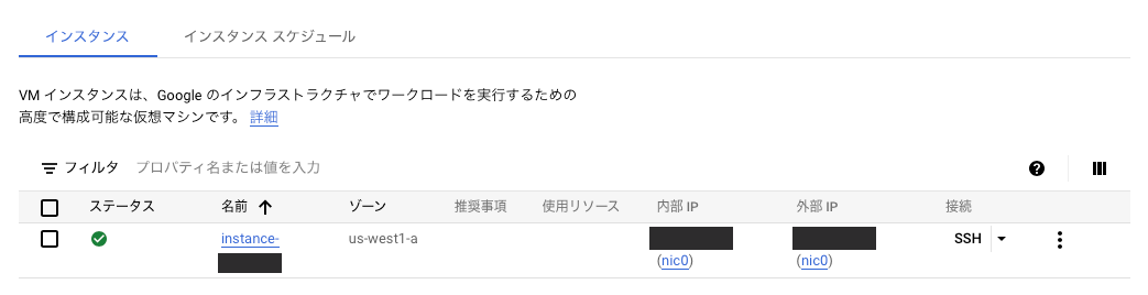ssh -i ~/.ssh/my_gce_vm VMインスタンス名@パブリックIP