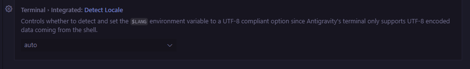 ざっくりいうと「AntigravityはUTF-8しか対応してないから$LANGを毎回確認して自動で設定する?」みたいなこと聞かれてる。
