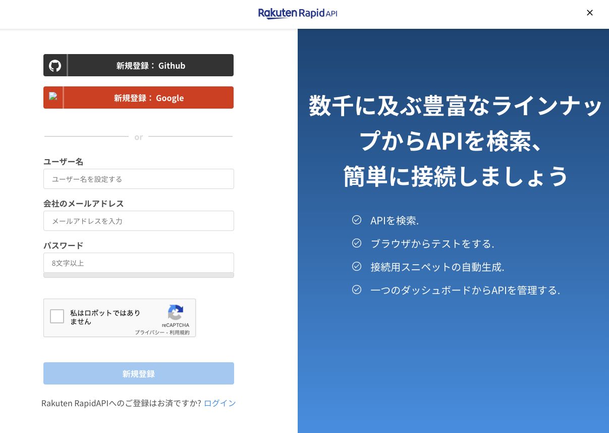 Rakuten Rapid API に新規登録