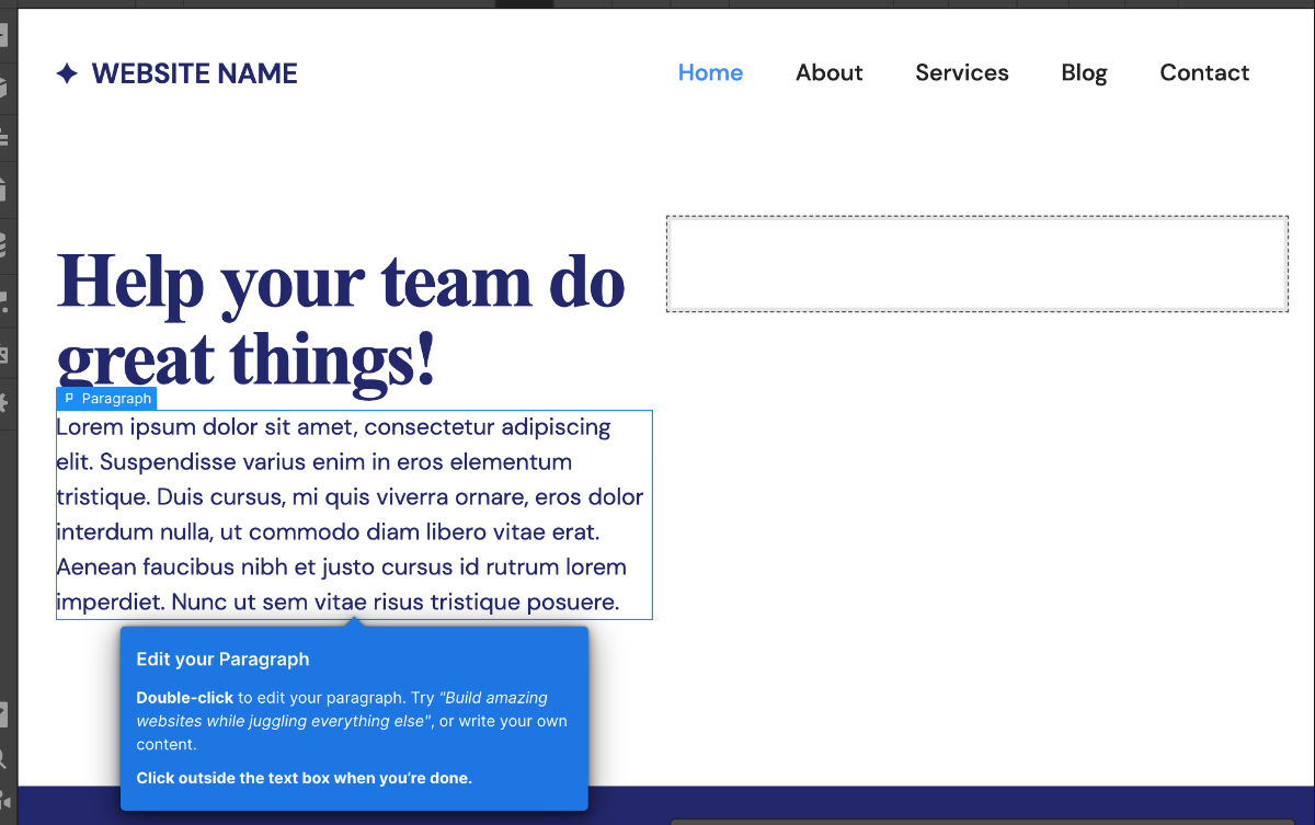 Paragraph要素をダブルクリックしてテキストを編集します