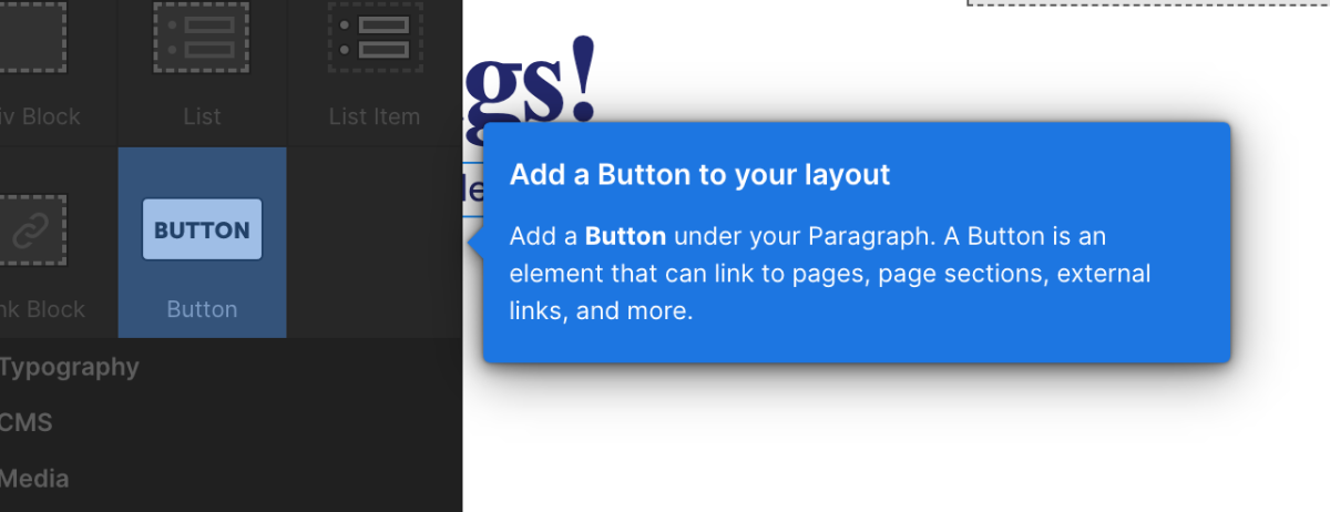 Button(<button>タグ)要素をParagraph要素の下にドラッグ&ドロップします
