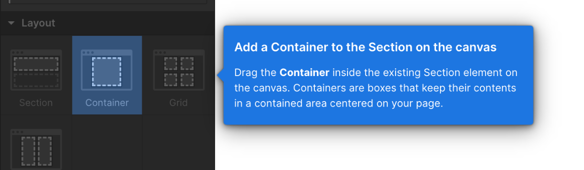 ContainerをドラッグしてCanvasにドロップします