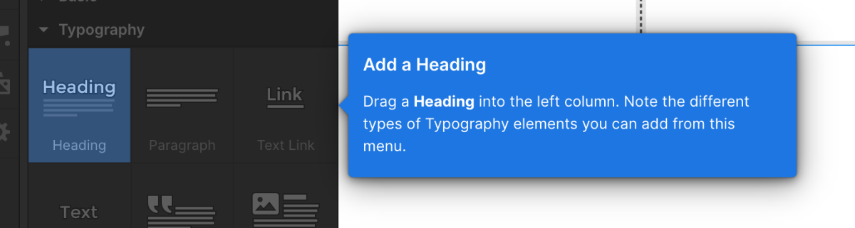 Headding(<h1>~<h6>のタグ)要素を左のカラムにドラッグ&ドロップします