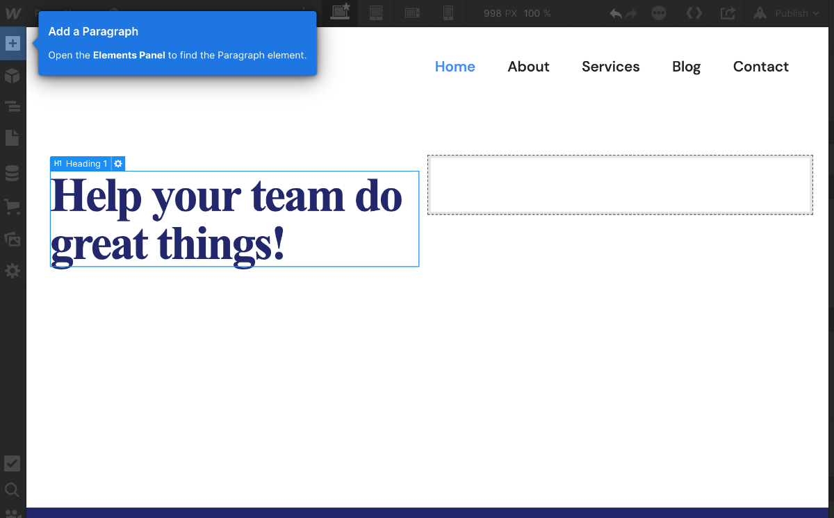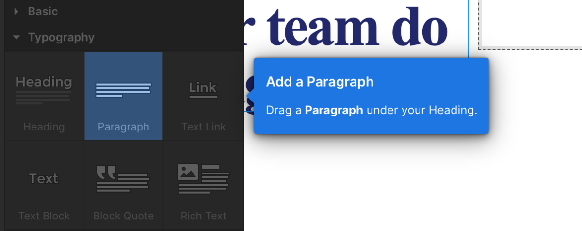 Paragraph(<p>タグ)要素を先ほどのHeadding要素の下にドラッグ&ドロップします