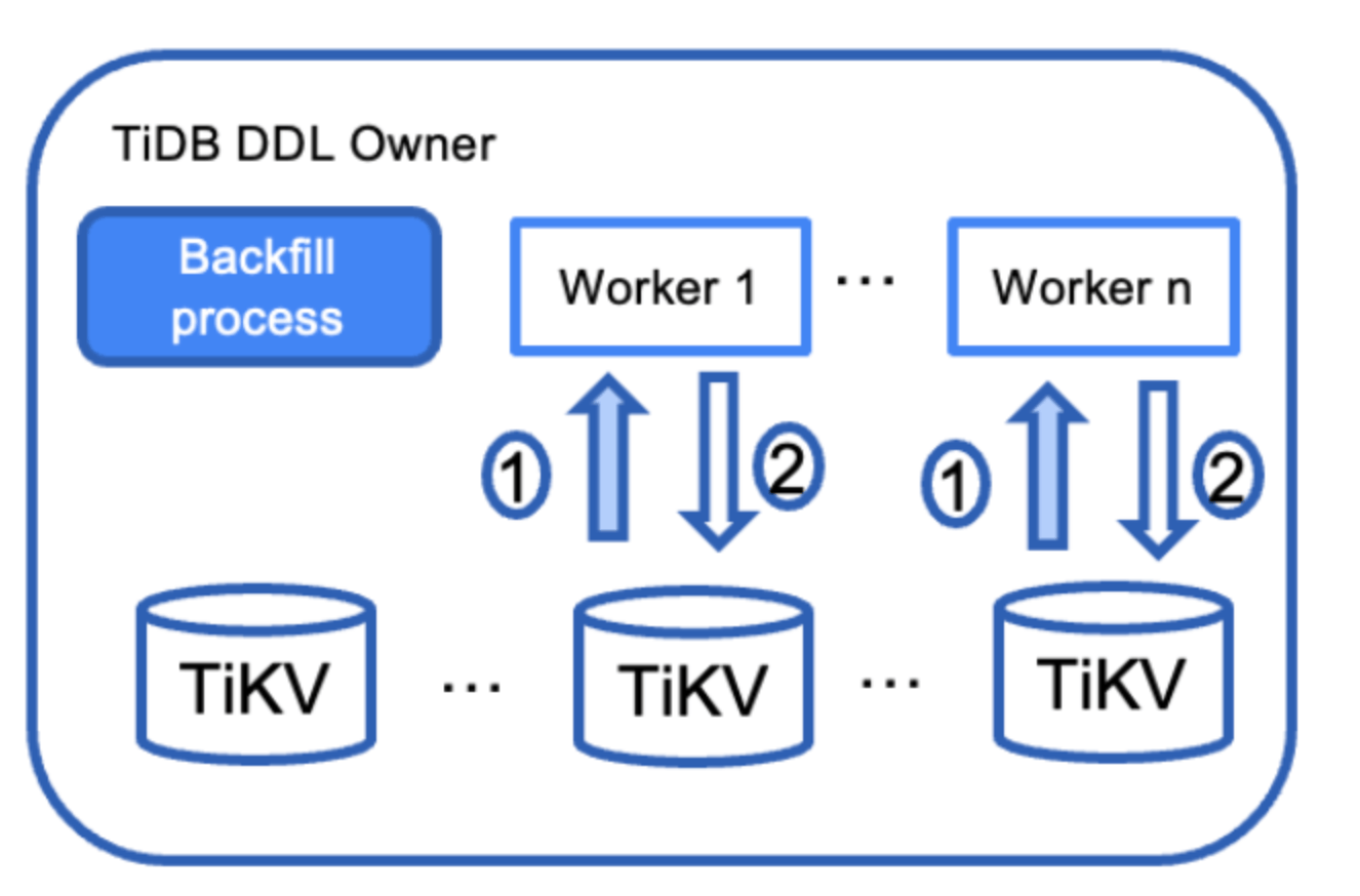 ②: インデックスデータは、バッチ書き込みトランザクションでTiKVに書き込まれます。フォアグラウンドによるトランザクションと競合する可能性があるため、再試行する必要が発生してしまいます。