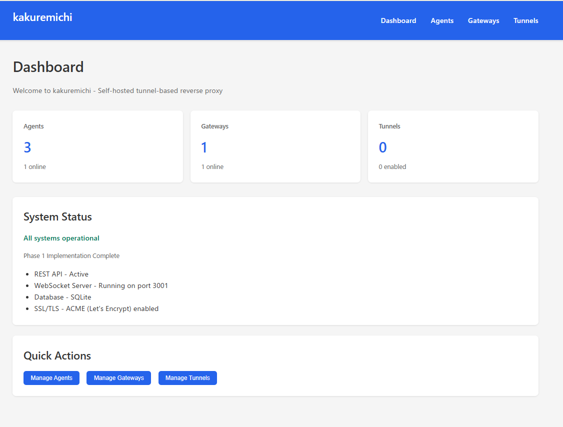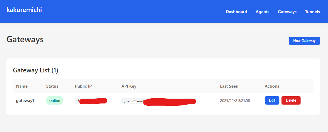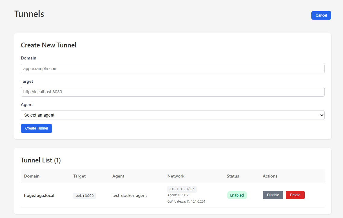 Control ServerにはWeb UIが付属しています。ここからAgent、Gateway、Tunnelの管理ができます。