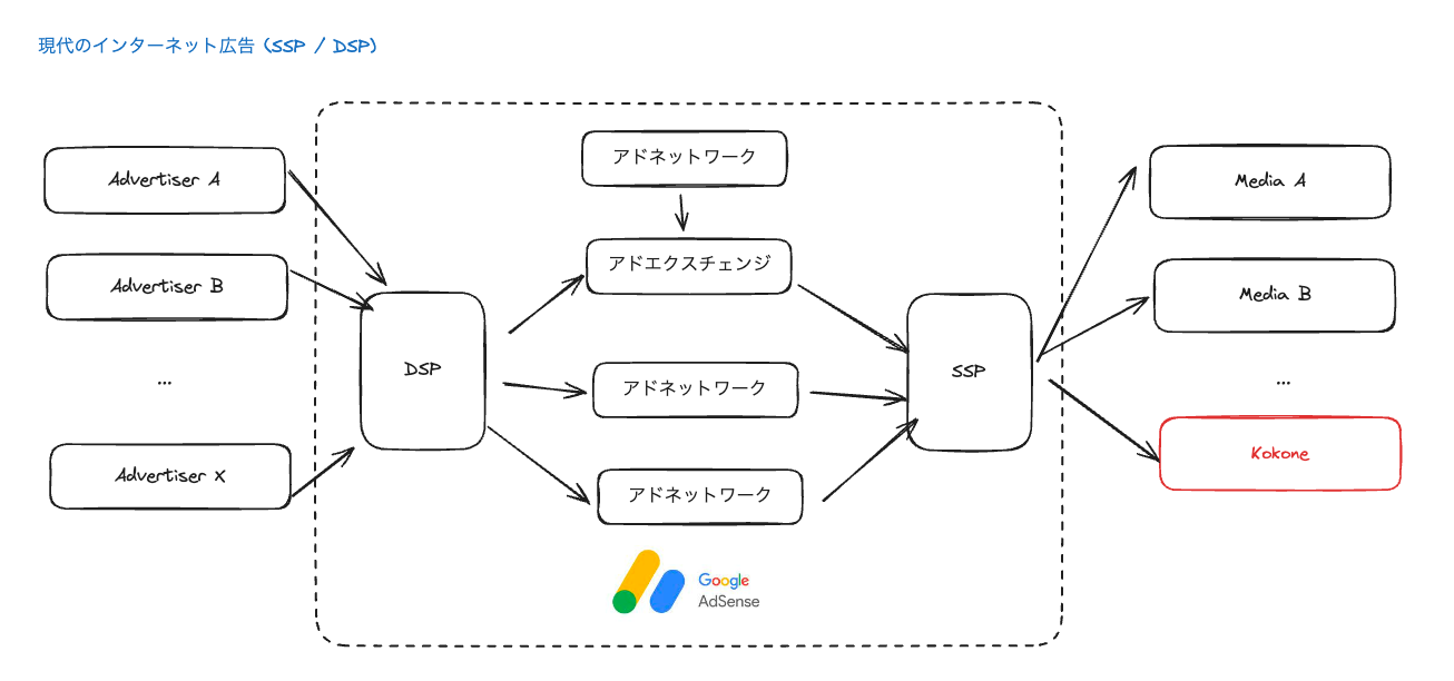 広告を貼ってマネタイズする場合、メディアは基本的にGoogle Adsenseの様なSSPサービスと契約する必要があります。